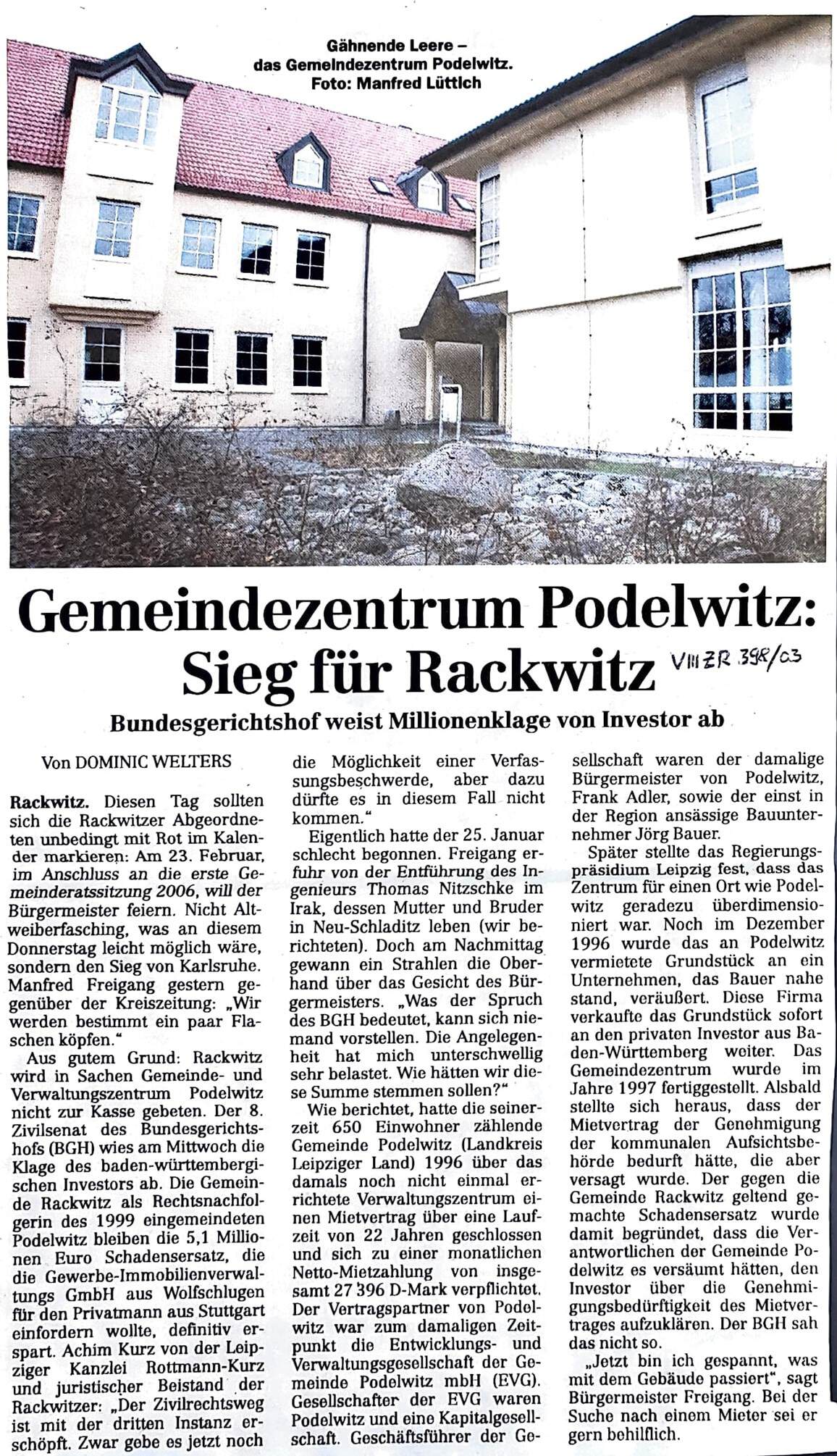 Zitat:"Durch den Bau eines Gemeinde- und Verwaltungszentrums mit mehr als 1.000 m² Nutzfläche für eine - vom Berufungsgericht treffend als "Kleinstgemeinde" bezeichnete - Gemeinde mit rund 600 Einwohnern und vier Bediensteten wurde im Streitfall offenkundig Gemeindevermögen verschleudert."